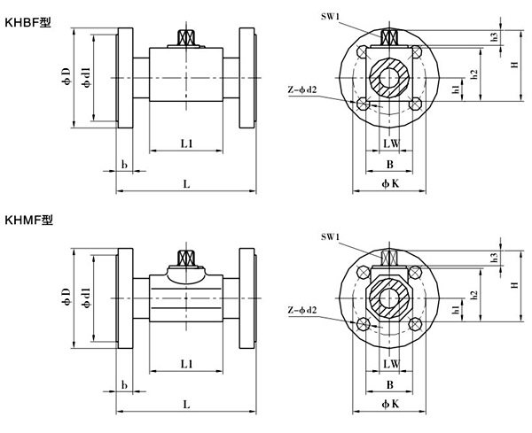 | 略型号 | 压力范围 | DN | LW | L | L1 | D | d1 | d2 | K | B | b | H | h1 | h2 | h3 | SW1 | Z |