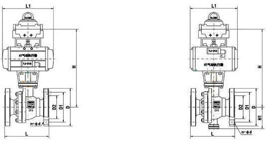| DN | L | H | D | D1 | L0 | Z-φd | 执行器型号 |
