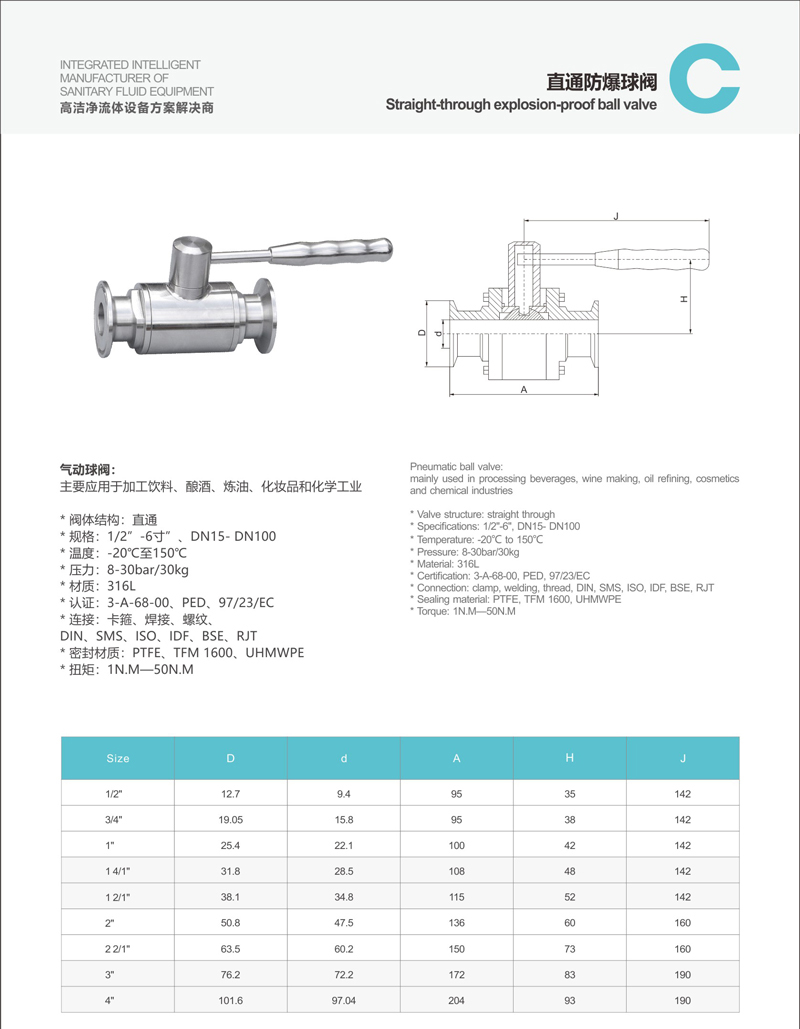 | 阀体材质: | 不锈钢SS304/SS316L | 结构形式: | 浮动球 |