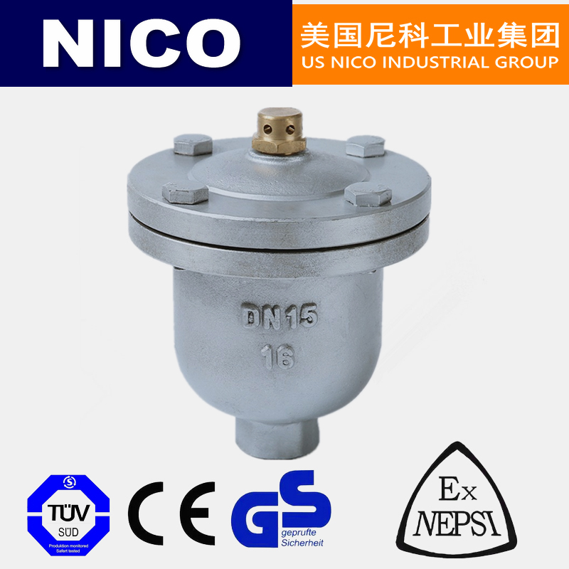 美国尼科NICO进口不锈钢快速排气阀,在压力管道运行中,快速排气阀_吸气阀能自动排除少量由水中析出的空气 ,以免阻水。在管道发生负压时能快速地进气,以免管道由于负压过大而发生失稳破坏。在管道放空时,能自动大量地进气,使放水加快,缩短停水时间。