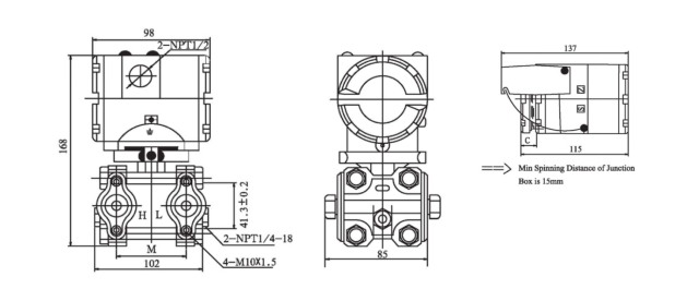 | SF | 线性/平方根输出4-20mAdc+HART信号,现场全功能按键 | ||||