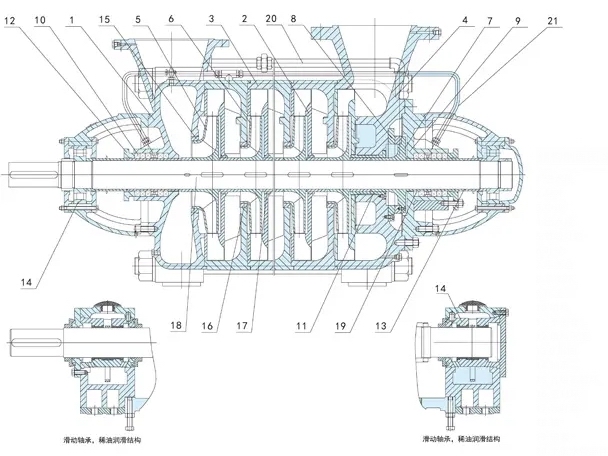 | 13 | O形圈 | 14 | 轴承 | 15 | 首级密封环 | 16 | 密封环 | 17 | 导叶套 | 18 | 轴 |