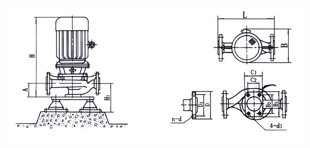 | L | B | H | C1*B1 | A | C2*B2 | 4-d1 | D | D1 | n-d | 规格 | H1 | |