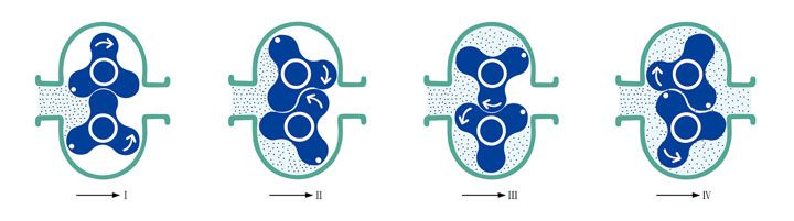 ![]() | (4) 四~十二叶转子:当转子叶片超过三叶后,其容积量因转子叶片的增加而减少,转子叶片越多,容积量则越少,多叶转子在输送物料时稳定性相对有所提高,但在输送过程中容易破碎颗粒物料。 | (4) multi-impeller: when impeller quantity beyond three, the capacity will decrease when impeller increase. Multi-impeller has high stability while using, but easy to damage grain medium. |